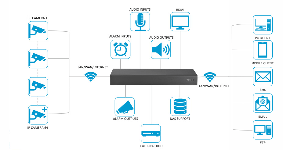The cascading feature offered by Matrix NVR allows simultaneous local and remote monitoring of offices across different locations. Additionally, it offers a huge storage capacity for better image storage and evidence gathering. Matrix NVR comes with advanced security features to detect threats and send instant notifications for real-time security.