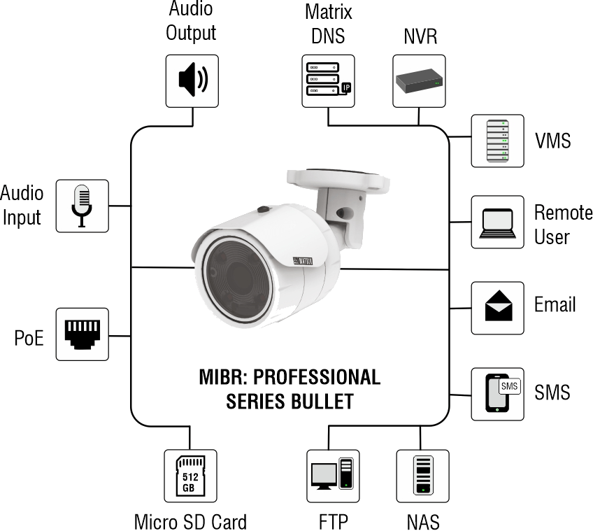 Matrix Professional Series 2MP IR Bullet Camera with 3.6mm Lens is specifically designed to meet the security requirements of small-scale business enterprises. Powered by Sony STARVIS the cameras come with the latest generation back-illuminated sensors that provide exceptional picture quality in low-lighting conditions.