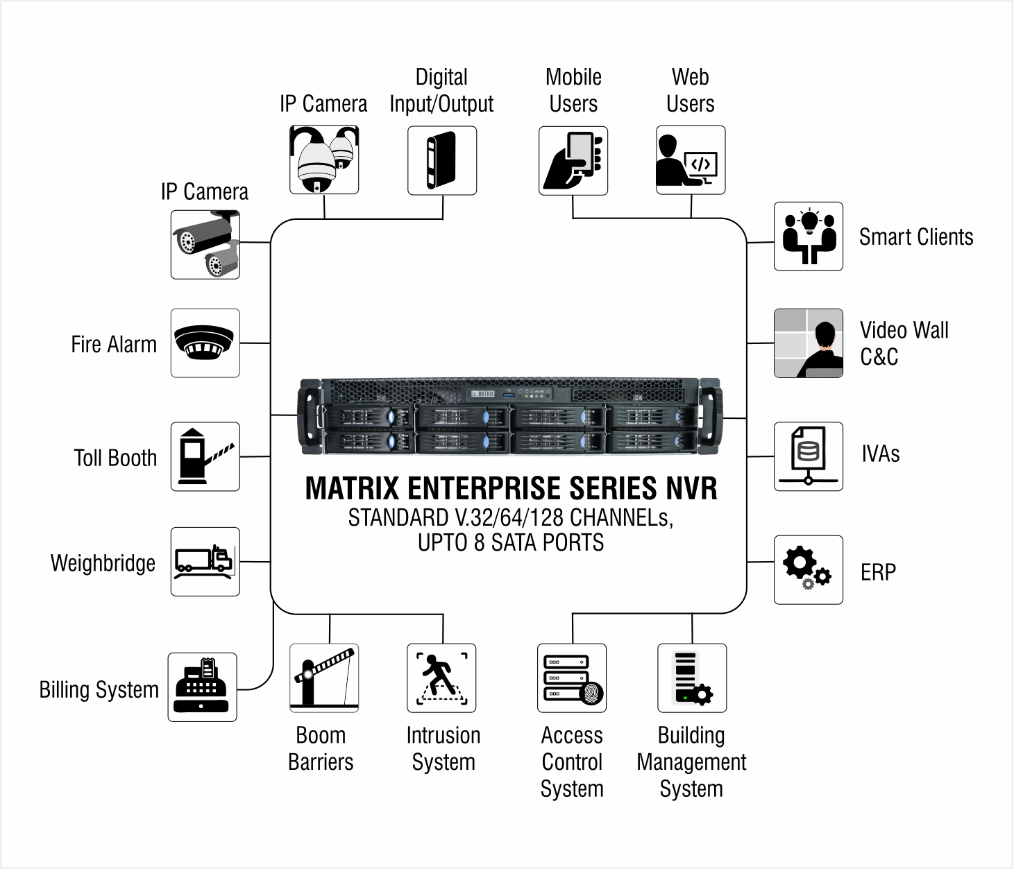 The cascading feature offered by Matrix NVR allows simultaneous local and remote monitoring of offices across different locations. Additionally, it offers a huge storage capacity for better image storage and evidence gathering. Matrix NVR comes with advanced security features to detect threats and send instant notifications for real-time security.