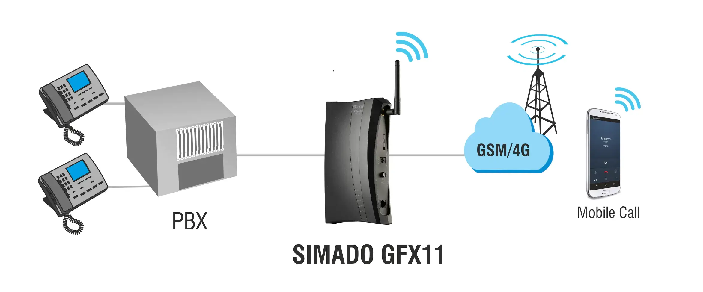 Organizations can buy GSM FCT devices to have a GSM Trunk facility for their conventional PBX. SIMADO GFX11/4G eliminates interconnection charges and provides substantial cost savings by turning all calls into mobile-to-mobile calls. It easily integrates with any PBX or telephone via a GSM/4G network.