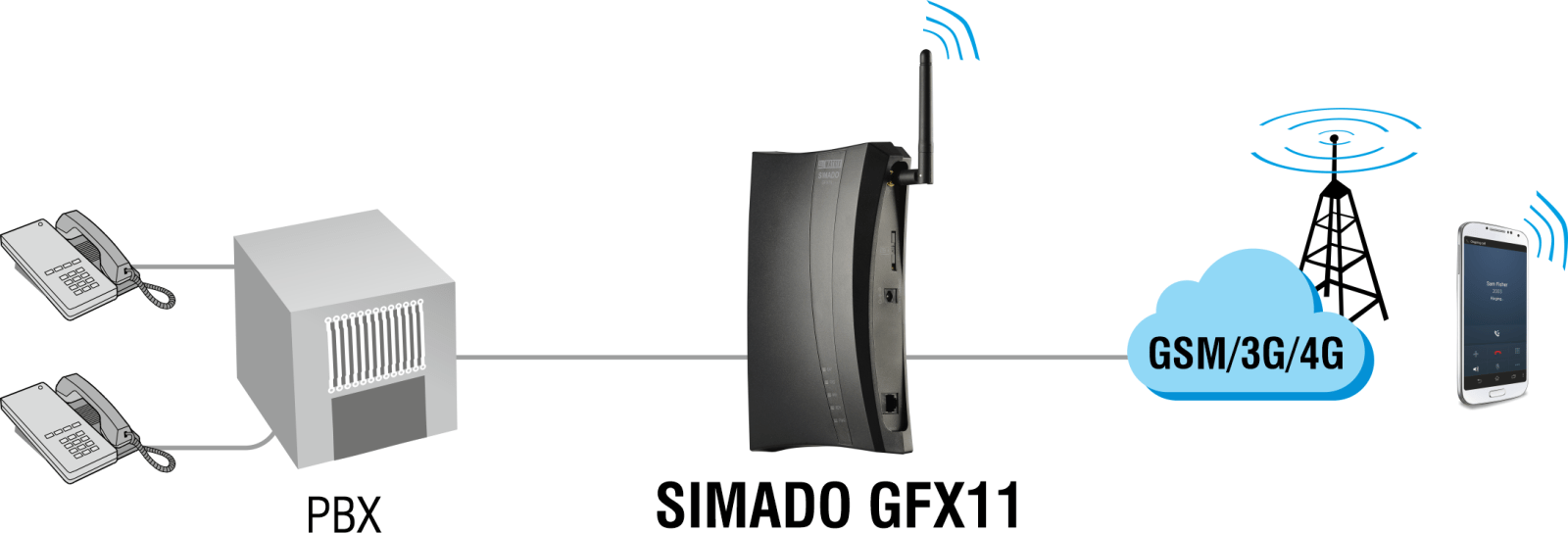 Additionally, it easily integrates with any PBX or telephone via a GSM/4G network. SIMADO GFX11 is ideal for small offices, remote project sites, and retail shops for cost-effective and reliable communication.