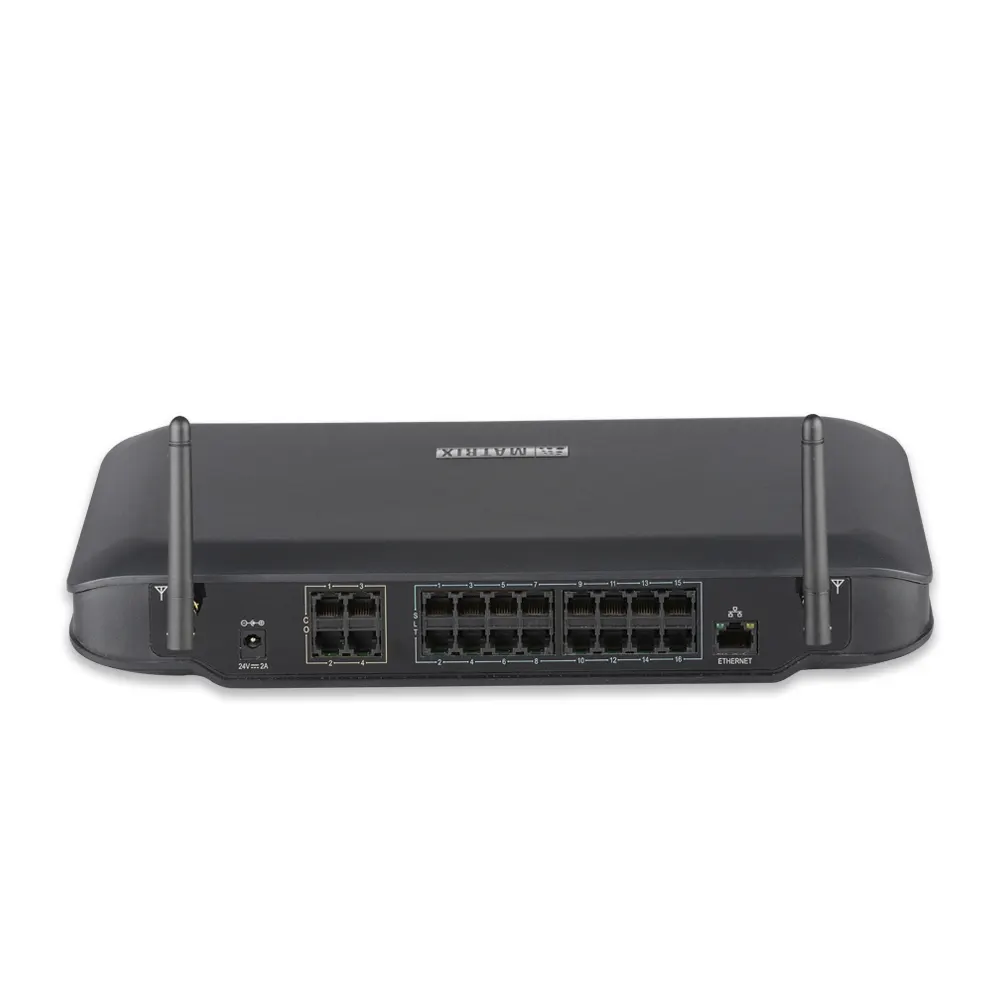 Matrix ETERNITY NENX416 establishes integrated interfaces for FXO (CO), GSM/3G, and VOIP networks. Its resilient design algorithm intelligently selects the most cost-effective route to place local, mobile, or long-distance calls and reduces telephony costs significantly.