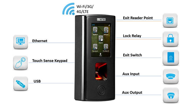 - Massive Storage Capacity - 5,00,000 Event Logs, 50,000 Users