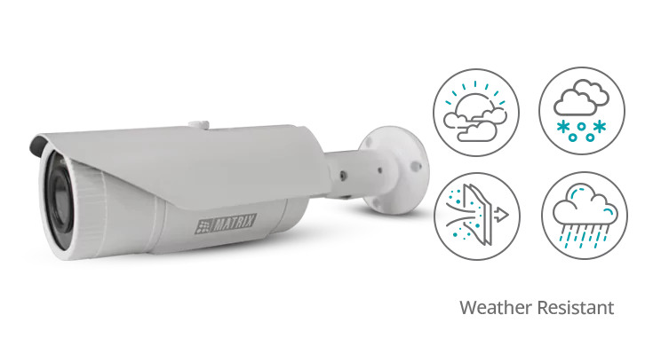 Matrix Project Series Bullet Network Cameras are designed to deliver clear and reliable surveillance in tough outdoor conditions. With a robust metal body, they can endure extreme weather. Equipped with True WDR technology, these cameras capture clear and balanced images in both dim and bright lighting. Their adaptive streaming technology reduces storage and bandwidth requirements. These cameras are cyber-secure and NDAA-compliant, protecting your data with confidence. Overall, they are an excellent choice for securing outdoor areas like parking lots, campuses, and industrial sites.